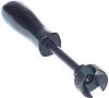 Приспособление Thorvik BRSC - профессиональный инструмент, предназначенный для монтажа и демонтажа прижимных пружин ("солдатиков"), размещённых в колодках барабанных тормозных механизмов. Такие тормоза ставятся на задних колёсах большинства автотранспортных средств. Рабочей частью инструмента является съёмная чашка с широкой прорезью, проделанной по её диаметру. Конструкция чашки и насечка на ней позволяет точно контролировать демонтируемый элемент, значительно сокращая время выполняемых работ. Приспособление оснащено широкой пластиковой рукояткой.