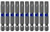 Набор бит TORX T40 длина 50 мм Profi CUTOP 83-664, 10 шт используется совместно с шуруповертами при монтаже/демонтаже винтов с внутренним шестигранником. Оснастка изготовлена из стали высшего качества S2. Ребра биты произведены способом холодной штамповки, кончик закаливается при температуре 870°C, в результате насадка имеет твердость 60 HRC.