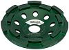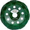 - Двухрядная конструкция с алмазными сегментами обеспечивает агрессивный и быстрый съем материала, значительно ускоряя процесс шлифовки по сравнению с абразивными дисками.