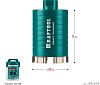 Корпус изготовлен из высококачественной стали, что обеспечивает прочность, отсутствие деформаций и вибрации. Коронки имеют паянные лазерной сваркой сегменты. Алмазное напыление на сегментах предназначено специально для работы с армированным бетоном. Оно обладает повышенной прочностью и износостойкостью. Стандартный хвостовик SDS-Plus подходит для большинства перфораторов.