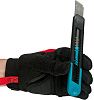 Главное преимущество этой модели. Позволяет мгновенно выдвигать и фиксировать лезвие нажатием кнопки на корпусе. Это обеспечивает: безопасность: лезвие надежно фиксируется в рабочем положении, предотвращая его случайное складывание во время резки. Удобство: возможность работать одной рукой, что критично важно, когда вторая рука занята удерживанием материала. Оперативность: быстрое приведение инструмента в рабочее состояние и его складывание.