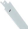 Полотно оснащено разведёнными зубьями типа Combo с частотой 10 - 14 TPI. Разводка зубьев предотвращает заклинивание полотна в материале за счет создания реза, ширина которого превышает толщину полотна. Это обеспечивает быстрое резание с минимальным сопротивлением и эффективный отвод стружки. Специальная геометрия зубьев поддерживает чистоту реза даже при работе с разнородными материалами.