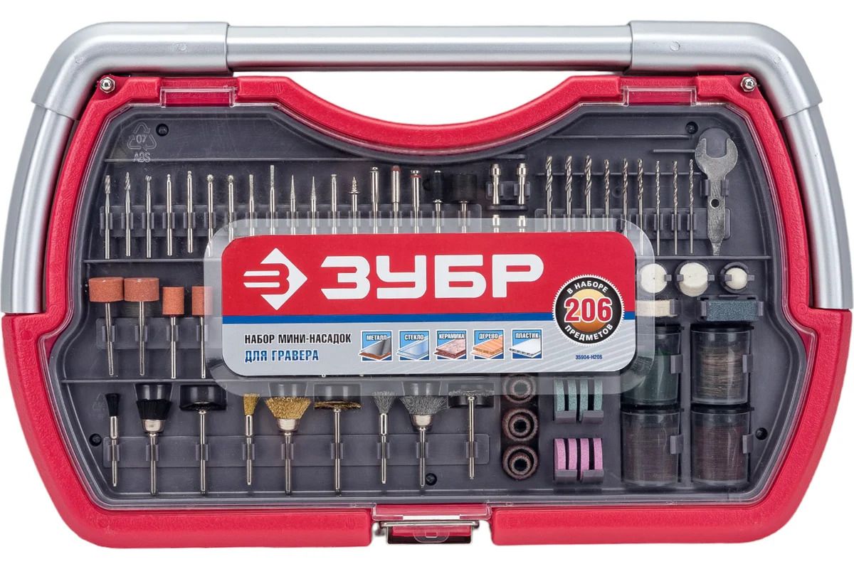 Набор мини-насадок для гравировальных машин ЗУБР 35904-H206, 206 предметов в кейсе купить в Самаре по выгодной цене