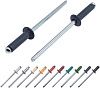 Заклепки вытяжные окрашенные подойдут для крепления фрагментов металлокровли, фасадных панелей, забора из профнастила, декоративных и рекламных поверхностей. Головки заклепок со стандартным бортиком выполнены в цветовой гамме RAL, выбор подходящего цвета позволяет усилить контраст или сделать невидимым места креплений. Корпус заклепок комбинированных и сердечник выполнены из оцинкованной стали. Такое сочетание материалов делает крепеж устойчивым к коррозии, высоким нагрузкам на срез и разрыв. Стойкая порошковая краска исключает появление сколов при установке, достойно переносит температурные перепады и атмосферные воздействия. Заклепка цветная имеет гарантию на покрытие 5 лет.